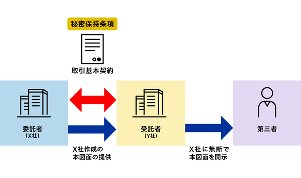 X社は、Y社に対し、X社が開発した製品の製作を委託したが、その契約には「契約の遂行上知り得たX社の技術上および業務上の秘密」を第三者に開示してはならない旨の規定があった。しかしY社は、X社から提供された製品の図面を無断で第三者に開示したため、X社は契約違反を主張した。