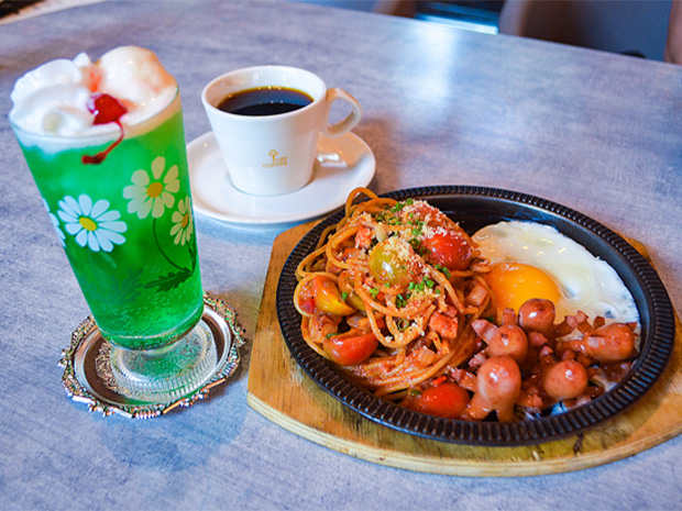 仕掛けはほかにもある。かつて日本の若者の間で流行した昭和レトロを再現し、写真映えするクリームソーダのほか、オムライスやナポリタンなど日本のカフェでなじみのある食事をそろえている。