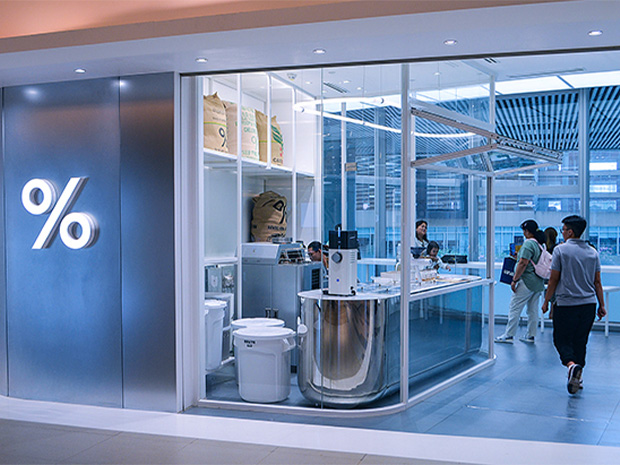 京都で誕生したコーヒー専門店「%アラビカ」がフランチャイズ方式で展開するフィリピン店舗は、スタイリッシュな内装が売りだ。白色を基調に洗練された統一感を強調している。