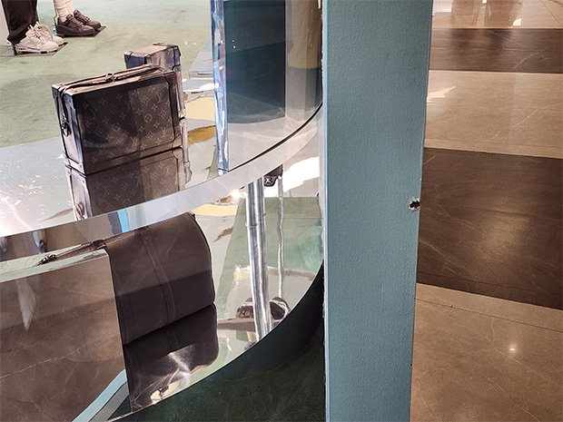 バンコクの「サイアム・パラゴン」で昨年10月に起きた発砲事件直後の店内の様子。ポップアップストアの柱には銃弾の痕が生々しく残っている(NNA撮影)