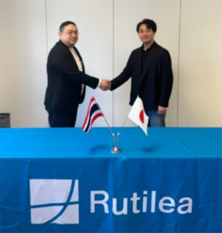 KMUTTの担当者と握手するルティリアの矢野貴文代表(同社提供)
